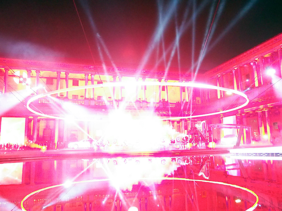 Over 1600 m2 for a total of approximately 45.000 supports held the impressive suspended ring, the star of the lovely exhibition area for the AUDI brand, where a futuristic innovation laboratory was recreated, where ideas representing glimpses into the future were on display with new products, creating a space for welcoming guests, sharing ideas and presenting the New Audi A6 and Audi AIcon concept.