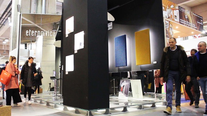 Durante i giorni di fiera abbiamo avuto modo di presentare il prodotto dal vivo tramite 3 pannelli posizionati lungo la parete; il pubblico ne è rimasto entusiasta potendo toccare con mano la lavorazione 3D resa ancora più accattivante dalla tipologia di tessuto in velluto e dalle diverse colorazioni dai toni accesi.