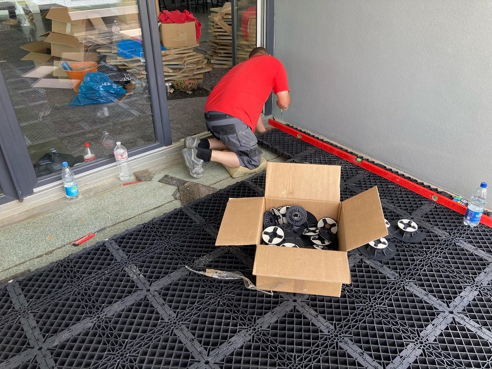 - la griglia: pannello in polimero termoplastico di colore nero di dimensioni 50x50 cm altezza 4 cm. Un elemento che permette di creare una superficie stabile e livellata per la posa delle lastre su cui posare svariate tipologie di rivestimento;